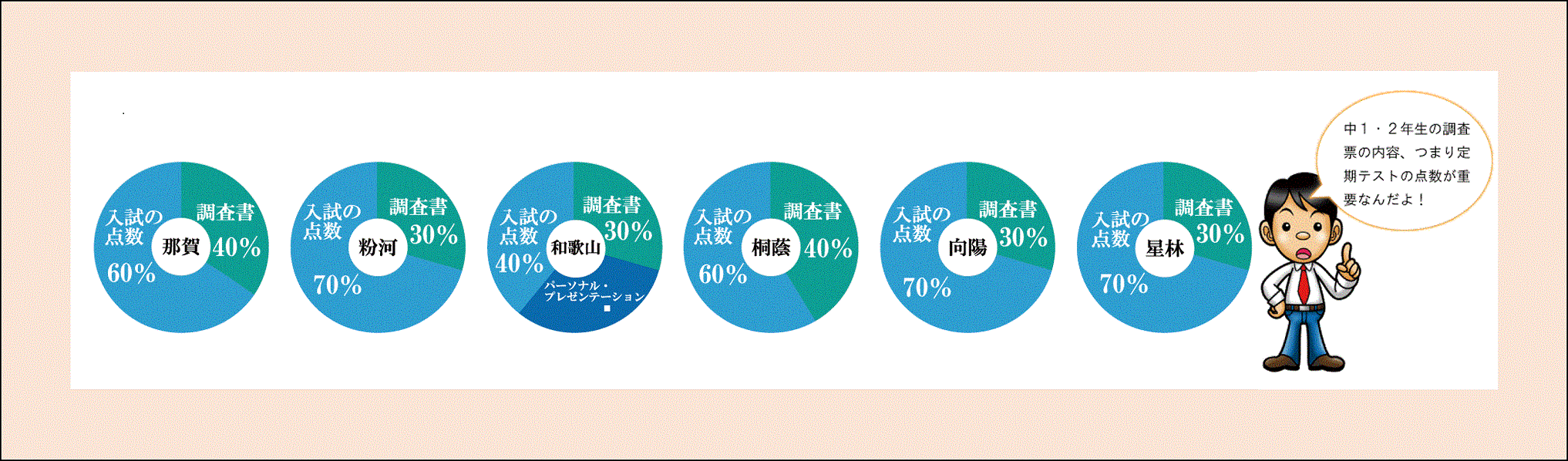 内申点と学力検査の比は、3:7 4:6 など学校によって比率は異なり、各高校で設定されています。